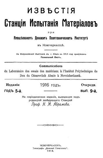 - «Курс сопротивления материалов» (Новочеркасск, 1915);