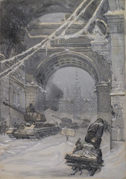 После окончания войны Кочергин вернулся в Ленинград. Во второй половине 1940-х годов он создал ряд монументальных полотен на исторические темы «Новгород наш» (1946), «Ленинградцы» (1948), «Штурм Зимнего дворца» (1950)[7] и серию иллюстраций «Ленинград в блокаде».