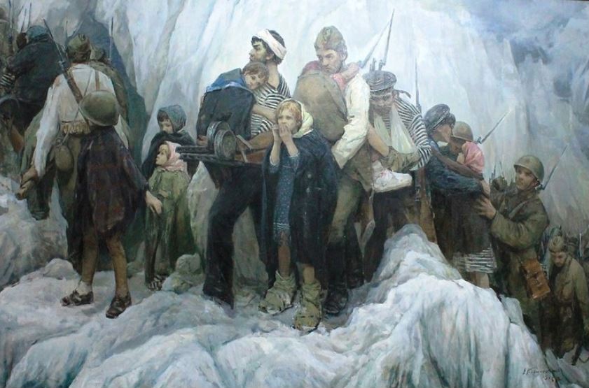 Полотно «Во имя жизни» стало одной из знаковых картин эпохи военных лет, аккумулировавшей мужество красноармейцев-защитников Родины и ужас войны, который пришлось пережить не только взрослым, но и детям. На холсте изображен момент эвакуации детей из оккупированной зоны, переход через горы Кавказа. Первая выставка картины состоялась в 1977 году в городе Пятигорске. Многие посетители останавливались и плакали[6].