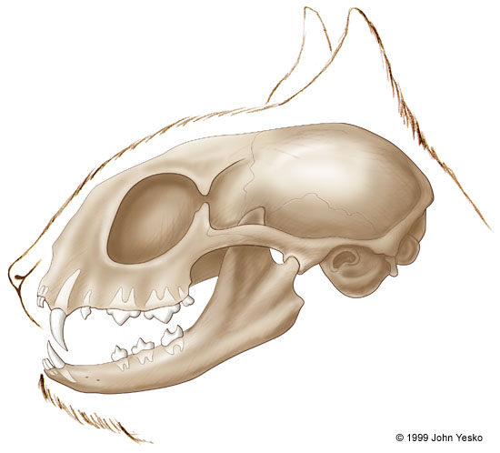 Существенная часть пространства внутри головы кошки отведена носу, который имеет снаружи носовые ходы, переходящие в полости и в носовой лабиринт сложной формы из решетчатых раковин.[1]