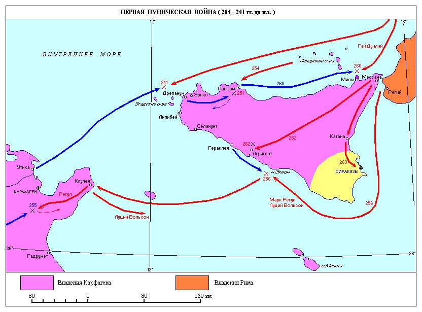 Таким образом, римский и карфагенский флот оказались у Мессаны, на Сицилии, и началась война.