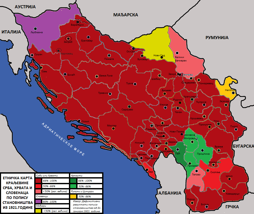 - ↑ Краљевина од седам покрајина-попис становништва 1921. у Краљевини СХС.. Глас јавности. Архивировано из первоисточника 30. 12. 2013. Проверено 2. 7. 2013..