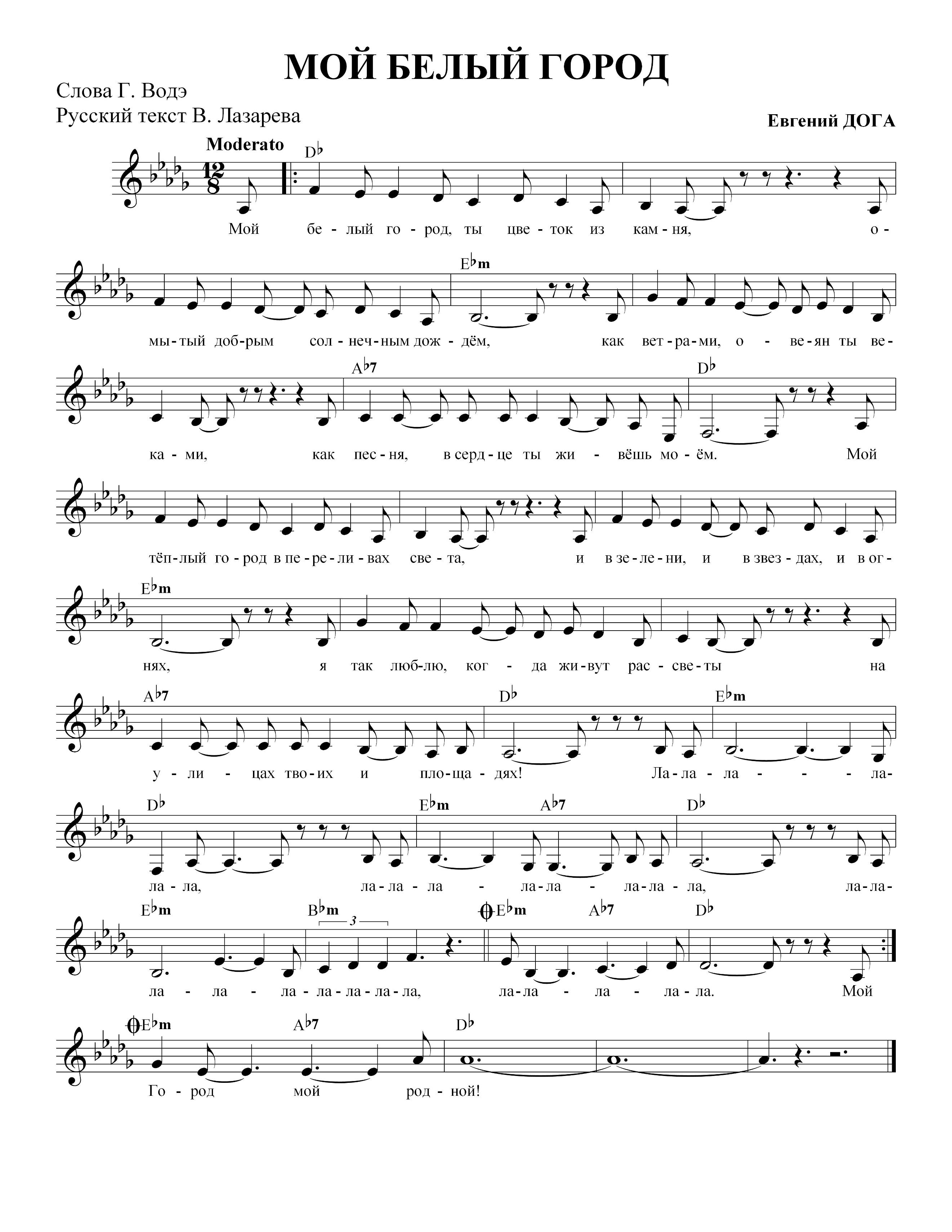 Песня «Мой белый город» является одним из лучших произведений Евгения Доги.