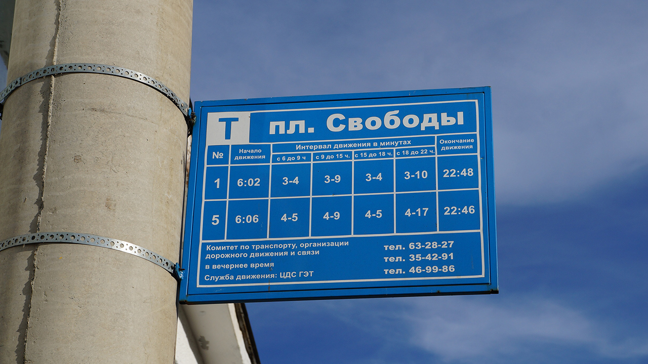 - Маршрут № 1: «„Площадь Свободы — Поток“„