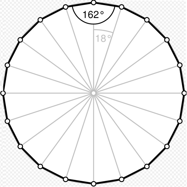 β — внутренний угол между соседними сторонами, β=9π/10=162°;