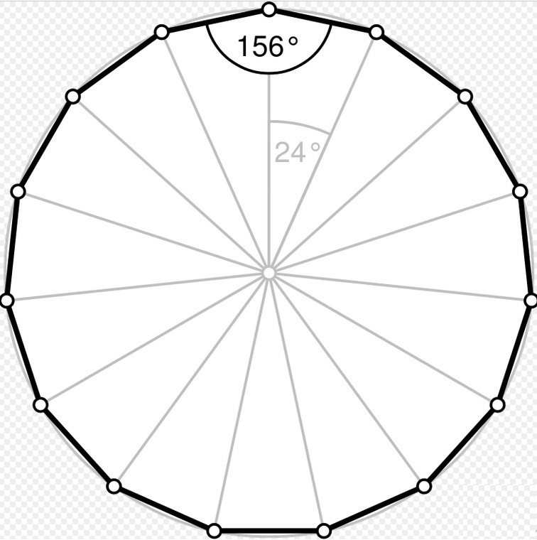β — внутренний угол между соседними сторонами, β=π˙13/15=156°;