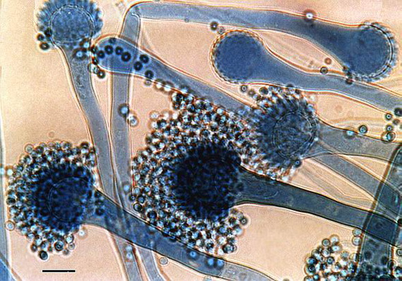 Аспергиллёз (aspergillosis) вызывают плесневые грибы рода Aspergillus: A. fumigatus, A. flavus, A. niger и A. nidulans. Чаще болеют люди с ослабленным иммунитетом, больные туберкулёзом, а также люди, применяющие цитостатики и иммуносупрессоры[9].