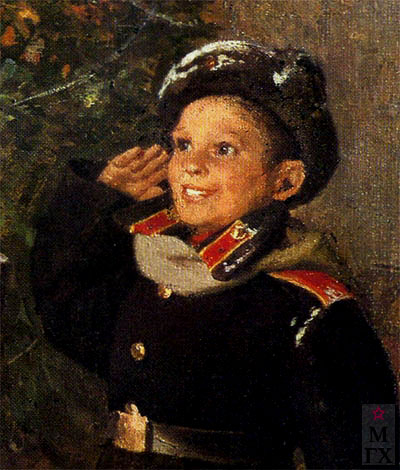 А вот мамы мальчика на полотне Ф. Решетникова нет. Быть может, художник таким образом хотел сказать, что мамы — вообще нет, что она тоже убита во время войны? Но тогда нет и ее портрета — хоть срезанного, но угадываемого.