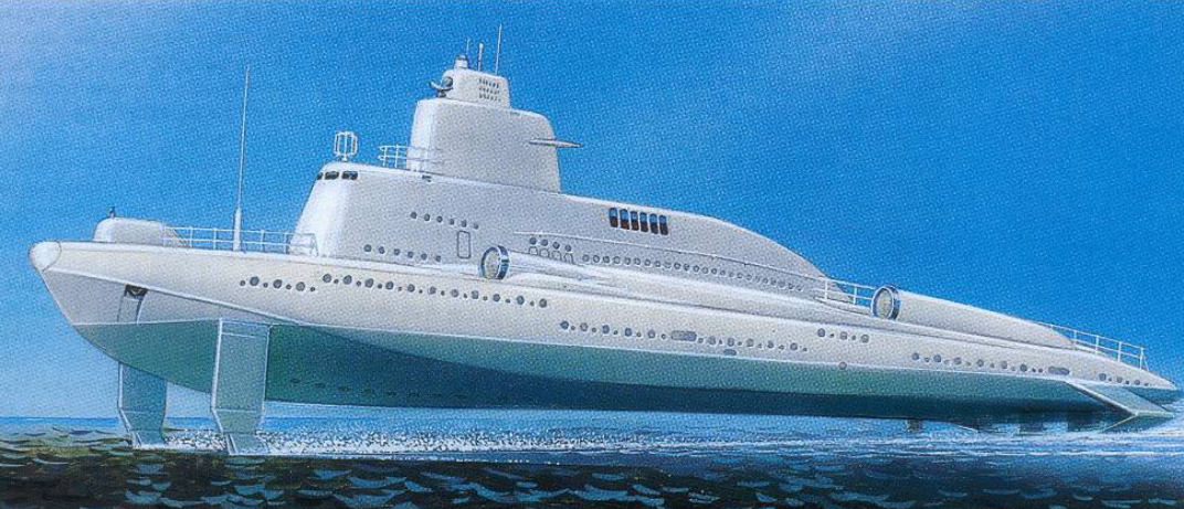 Для обеспечения высокой скорости надводного хода были рассмотрены следующие варианты: движение на подводных крыльях, глиссирование, плавание с увеличенными скоростями, движение на воздушной подушке и скоростное движение в режиме РДП (работа дизелей под водой). Помимо расчетов проводились эксперименты в аэродинамической трубе. При выборе учитывались не только ныне существующие вооружения и механизмы, но и опытные образцы в стадии изготовления, а также перспективные образцы техники, возможные в будущем. В итоге выяснилось, что корабль на подводных крыльях превосходит остальные варианты по скорости надводного хода и мореходности, но уступает по некоторым маловажным параметрам[3].