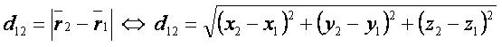Расстояние между точками в трёхмерном пространстве