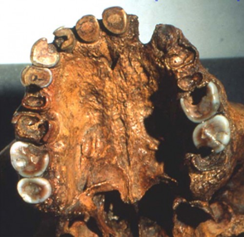 | Homo neanderthalensis | Кариес встречается очень редко. Исследование зубного камня показало следы гранул крахмала, плодов финиковых пальм, бобовых, водяных лилий, спор шампиньонов, фрагментов волос кролика, рыбьей чешуи и птичьих перьев. | Всеядность. | ||
