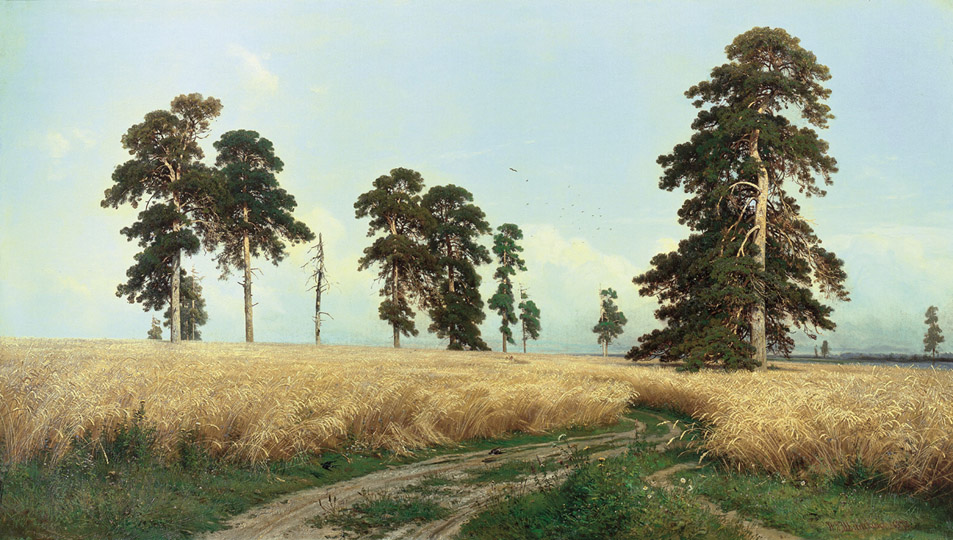 Тема бескрайнего поля использовалась Шишкиным не впервые — еще в 1866 году он создал картину «Дорога во ржи», всю нижнюю часть которой занимало бесконечное колосящееся ржаное поле, а верхнюю — такое же бездонное небо; само же поле прорезалось унылой проселочной дорогой с одинокой фигурой бредущего путника. Да и вообще тема засеянного поля неоднократно появлялась в произведениях и русской, и не только русской живописи.