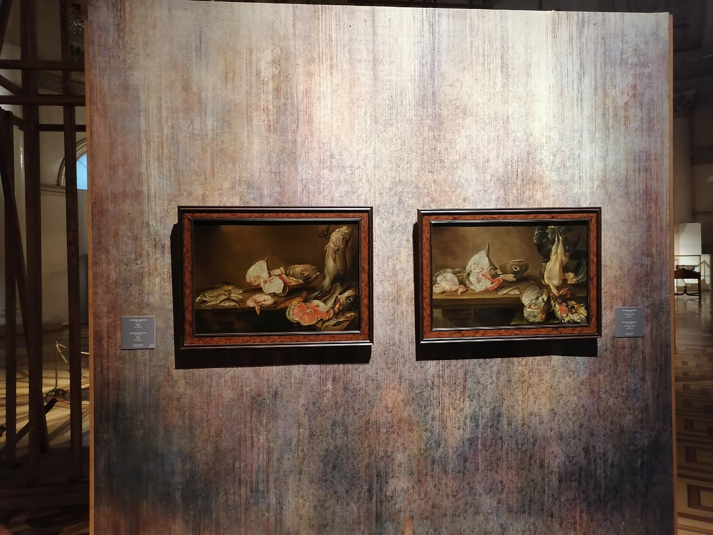 У картины есть парная работа «Рыбы и дичь», с полностью аналогичной композицией, она также находится в собрании Государственного Эрмитажа (холст, масло; 57,5 × 86,5 см; инв. № ГЭ-7282)[6]. Однако хранитель фламандской живописи в собрании Эрмитажа Н. И. Грицай считает эту парность весьма условной и объясняет её тем, что обе картины имеют близкие размеры и композицию, идентичность стиля и в пару они могли быть объединены лишь в собрании князя Потёмкина-Таврического[1] (в описи его собрания значатся под № 155 и 156 «две картины, представляющие столы, на которых все виды рыб»[7]).