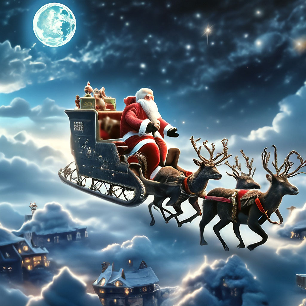 В США Санта-Клаус использует сани, но в его упряжке восемь оленей и передвигается он по небу.