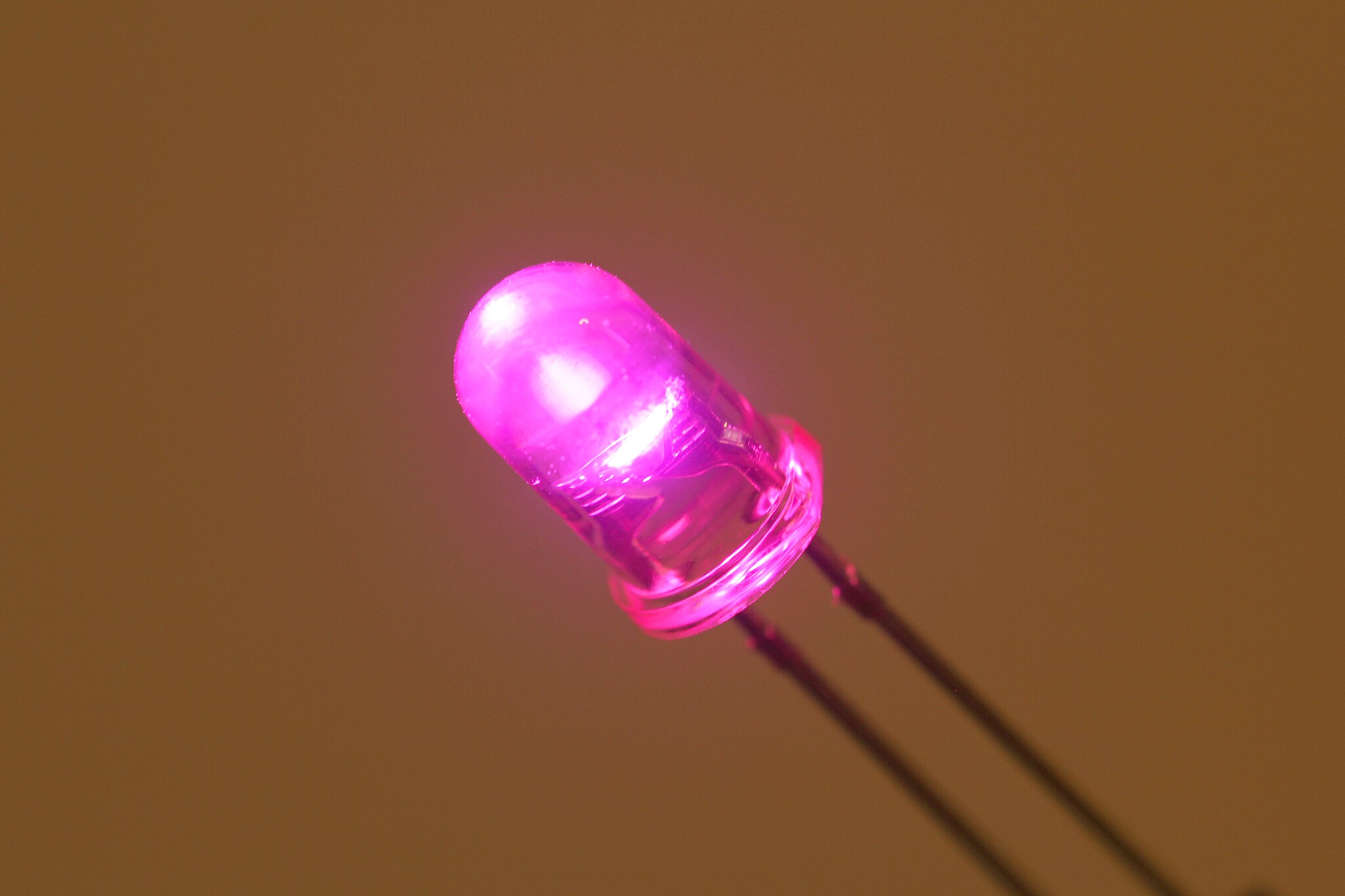 При пропускании электрического тока через p-n-переход в прямом направлении носители заряда — электроны и дырки — движутся навстречу и рекомбинируют в обеднённом слое диода с излучением фотонов из-за перехода электронов с одного энергетического уровня на другой[1]..
