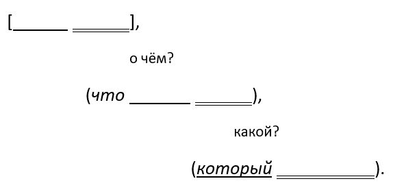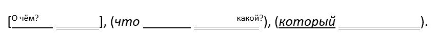 - Подчинённое предложение вместе с союзом обозначается круглыми скобками, главное слово, от которого задаётся вопрос, помечается крестиком[5].