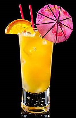 - ром с ежевичным и кокосовым ликёром, вином, апельсиновым и персиковым соком