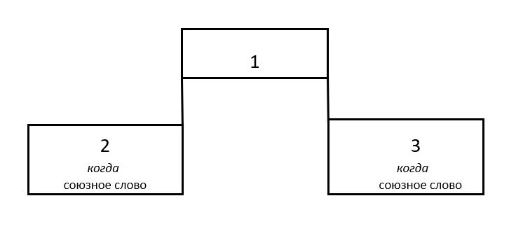 Пример 2. Я понял всё не в тот момент 1/, когда она пришла 2/, а в тот момент 1/, когда она разговаривала со мной по телефону 3/.