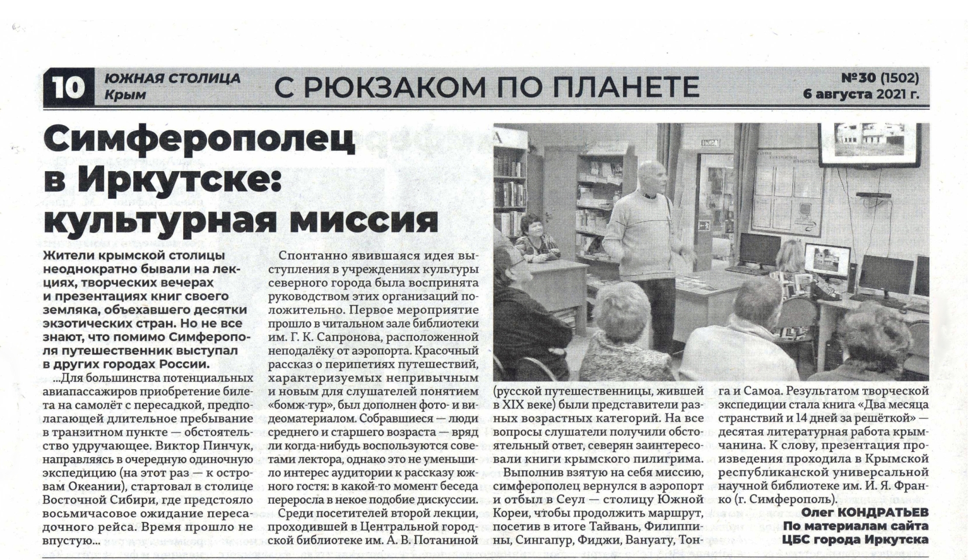 1,47 Мб | О. Кондратьев «Симферополец в Иркутске: культурная миссия» — Южная столица: газета. — 6.08.2021. — № 30 (1502) Источник: http://simadm.ru/media/uploads/userfiles/2021/… | 1 |