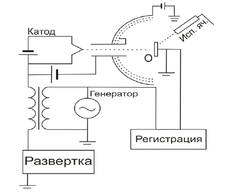 Подавая небольшое (0,1−0,2 В) синусоидальное напряжение частотой на катодный узел, можно промодулировать первичный пучок по энергии, а с помощью системы синхродетектирования выделить первую производную от тока в цепи образца. Тогда выражение для токового баланса запишется в виде: