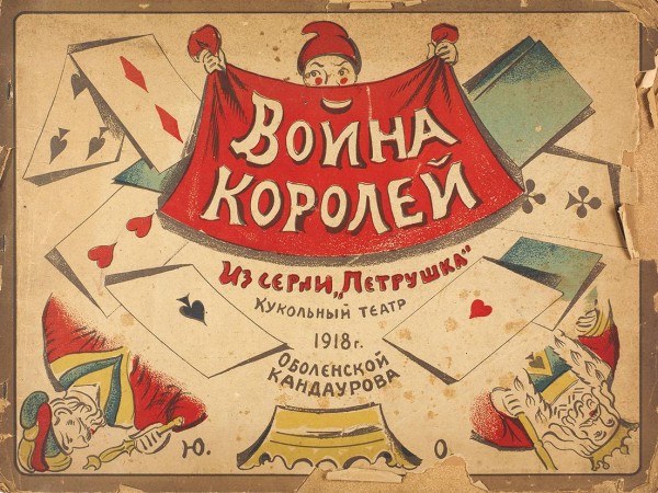 Для решения культурно-просветительских задач Советская власть использовала любимые народные развлечения, поэтому в первый послереволюционный год театр Петрушки привлёк внимание организаторов культуры. В 1918 году при Театральном отделе Народного комиссариата просвещения была создана студия кукольного театра, для которой художница Ю. Л. Оболенская написала пьесу «Война королей», изданную в том же году с иллюстрациями К. В. Кандаурова[7], где в аллегорической форме противоборства карточных королей и бунта против них «рядовых» карт изображалась Первая мировая война, приведшая к революции в России. В пьесе Петрушка выступает представителем революционного народа, её первое представление было посвящено годовщине Октября[8].
