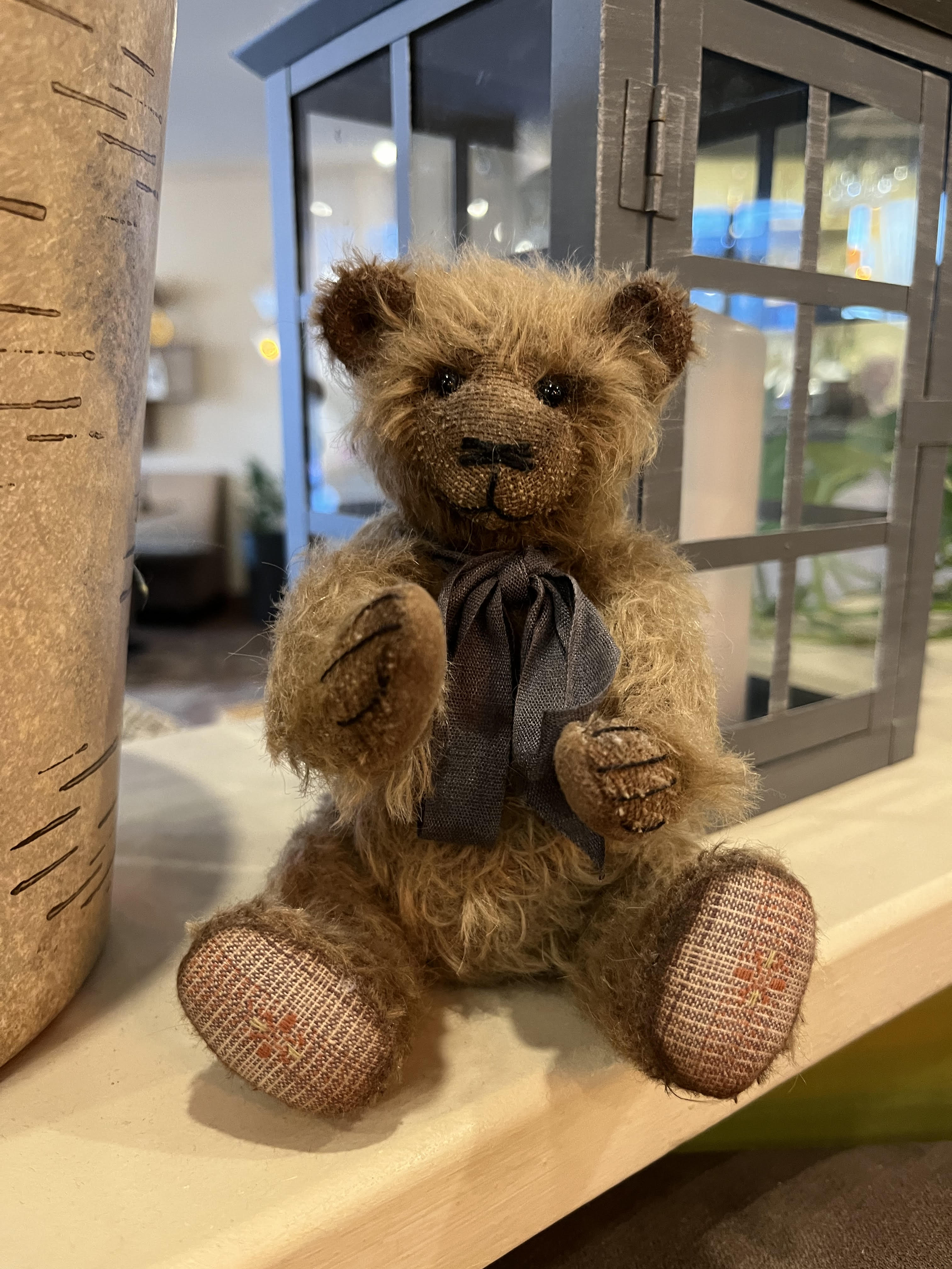 - Мордочка оформляется особым способом. Глаза делают вручную из стекла. Нос либо вышивают, либо делают из полимера. Иногда готовых мишек искусственно состаривают, тонируют шкурку, мордочку, придавая каждой игрушке индивидуальность[4].