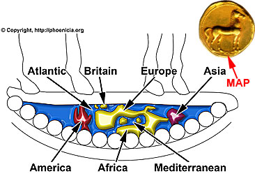 - ↑ McMenamin, M. A. 1996. Carthaginian Cartagraphy: A Stylized Exergue Map. Meanma Press, South Hadley, Massachusetts; McMenamin, M. A. 1997. The Phoenician World Map. Mercator’s World 2(3):46-51; Scott, J. M. 2005. Geography in Early Judaism and Christianity. Cambridge University Press, pp. 182—183.
