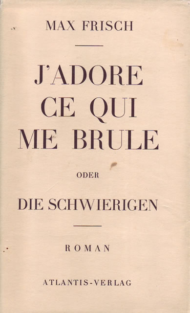 - Max Frisch: J’adore ce qui me brûle oder Die Schwierigen. Atlantis, Zürich 1944. (Erstausgabe)