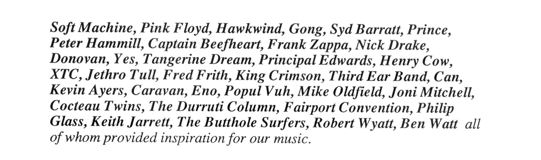 Также Уилсон в числе влияний упоминает ряд академических композиторов, таких как Стив Райх, Карлхайнц Штокхаузен и Арво Пярт.