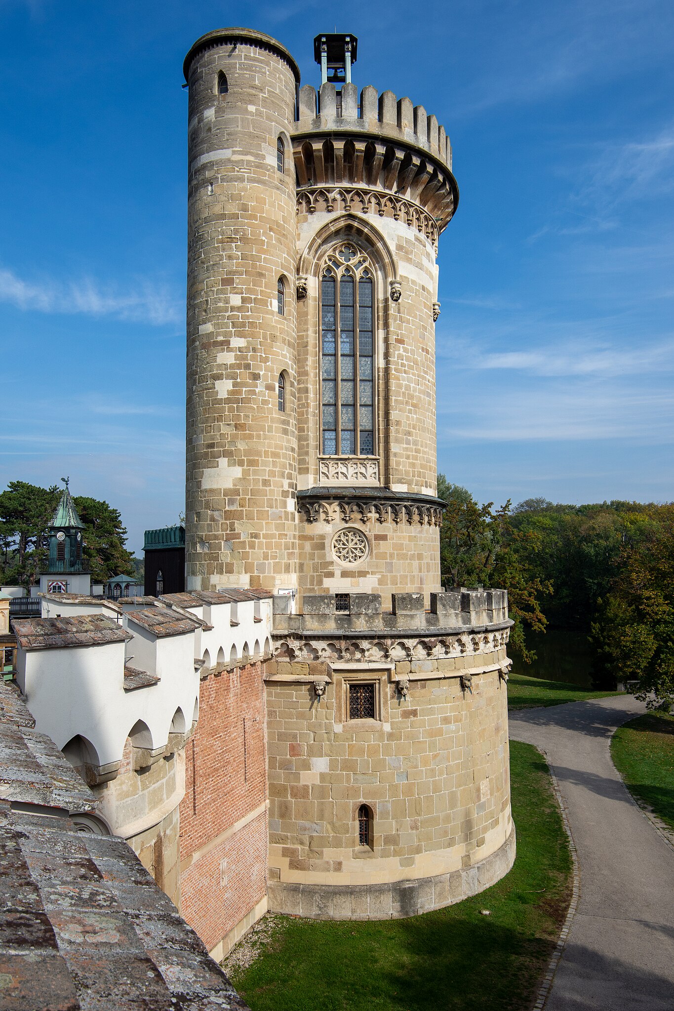 Deutsch: Blick vom Dach der Franzensburg auf den Hohen Turm | |