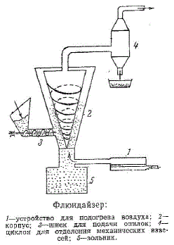 Недостатком флюидайзера является опасность возникновения пожара от обугленных и обугливающихся опилок, оседающих в местах небольшой скорости движения воздуха. Во избежание этого необходимо периодически удалять часть обугленных опилок.[1]