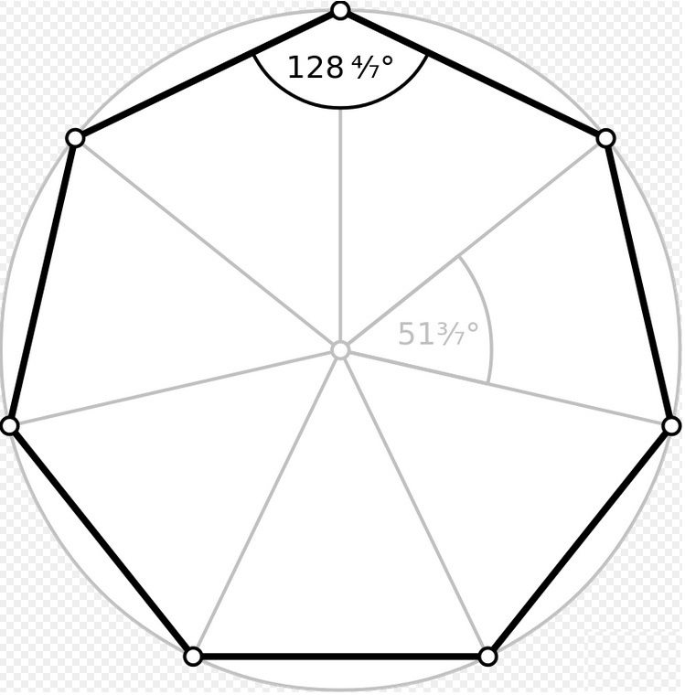 Правильный семиугольник (гептагон) — выпуклый многоугольник с 7 равными сторонами.