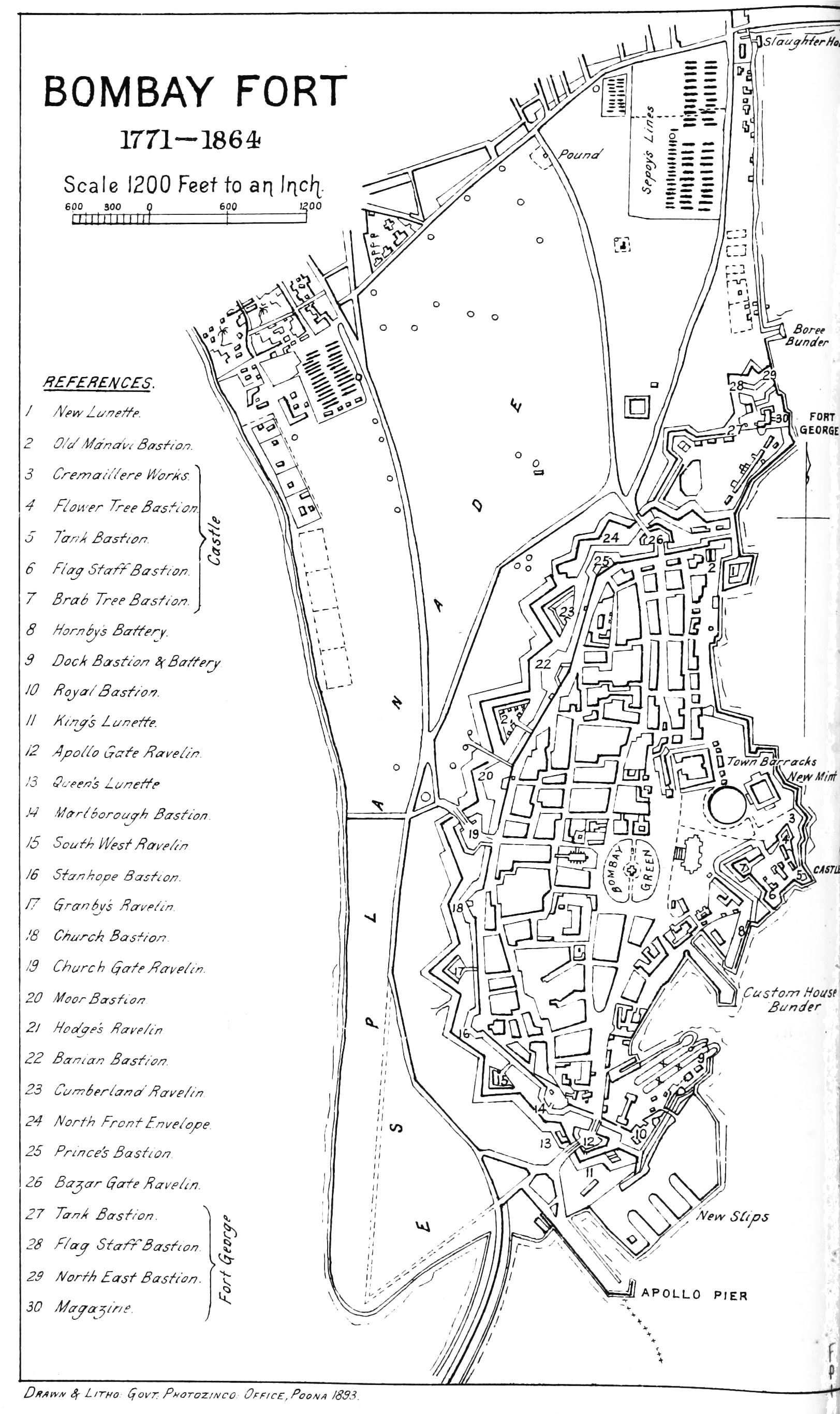 В 1769 году был построен Форт Джордж, названный в честь короля Великобритании и Ирландии Георга III. Форт стал опорным пунктом британской колониальной администрации в Бомбее, пока резиденция губернатора не была перенесена в Парел в 1829 году[1].