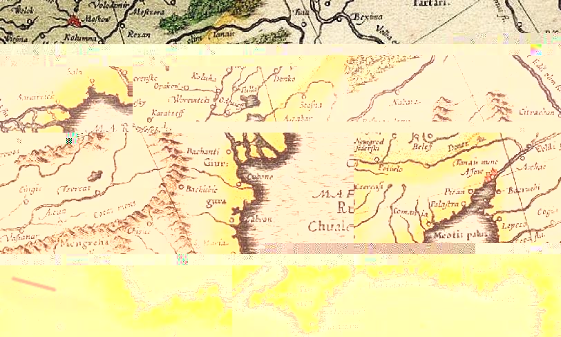 На карте Джакомо Гастальди Moschovia Nova Tabula 1548 года Хазария показана к северу от Крыма и Азовского моря, как и на Карте Московии 1550 или 1551 года.