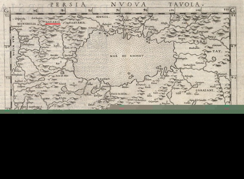 Хазария изображена на карте Персии 1574 года Persia Nuova Tavol. Она там находится на Северном Кавказе, к северу от Дербента.