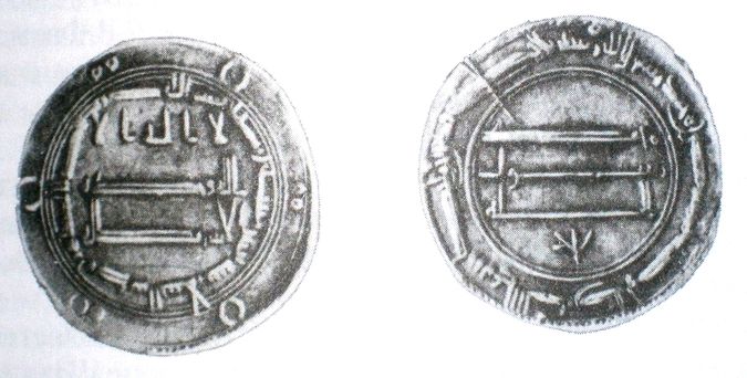 Сложнее дело обстоит с другими монетами, стилизованными под арабские дирхемы, однако сделанные с ошибками (выявлен ряд грамматических и каллиграфических недочётов, в частности даты правления халифов не соответствуют годам, когда эти халифы фактически правили; были и орфографические ошибки, показывающие, что гравёры слабо владели арабским языком и т. д.), а также с тайным хазарским знаком[7]. Очевидно, в Хазарии подделывали арабские монеты. Они имеют фальшивую отметку багдадского монетного двора «Мадинат ас-Салам»[Прим. 1].