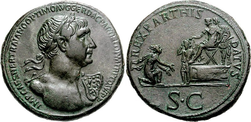 В 117 году, после восшествия на римский престол нового императора Адриана, внешняя политика Рима претерпела определённые изменения. Пришлось отказаться от претензий на новые провинции, которые Траян попытался включить в состав Римской империи, и граница между нею и Парфией вновь вернулась к старому рубежу по реке Евфрат. Для того чтобы воздать должное деятельности Траяна на Востоке, Адриан учредил Парфянские игры, которые праздновались в течение многих лет. Сама Парфия также потеряла часть своих территорий: сообщение о том, что цари Бактрии отправили послов к Адриану с предложением о дружбе, может свидетельствовать о независимости Бактрии в то время[28][29].
