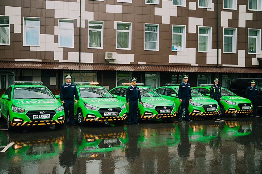 В гараже дорожного патруля есть: грузовики, пикапы, фургоны, легковые машины. Это автомобили ярко‑зелёного цвета с проблесковыми маячками на крыше и логотипом ЦОДД[7]. Впервые патрульные машины появились в городе в 2017 году. Тогда в автопарке их было пять, в 2023 году уже 57[8].