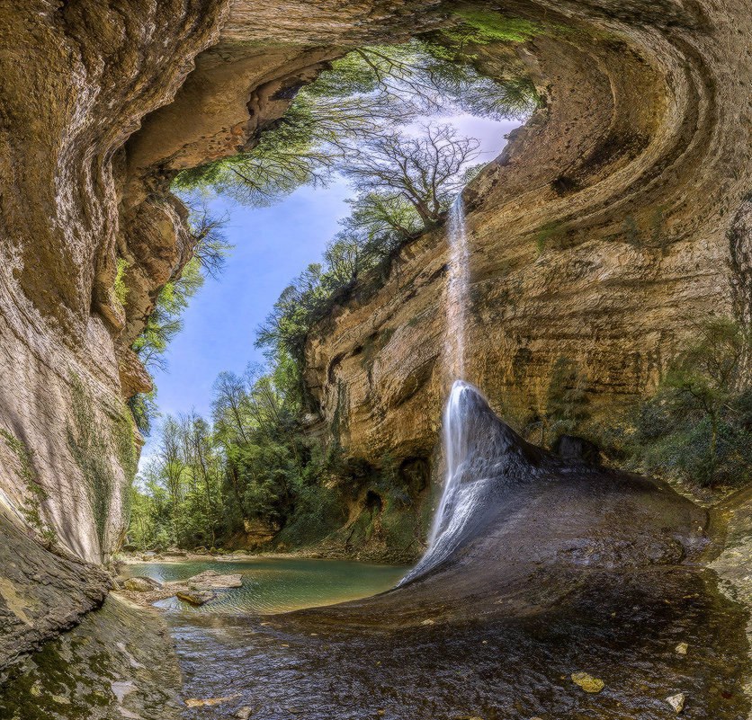 Всю его грандиозность шакуранского водопада можно наблюдать находясь не только сверху. Достаточно забраться на стоящий посреди озера конус, состоящий из известняка. Здесь можно будет наблюдать, как формируются подземные воронки и котловины.