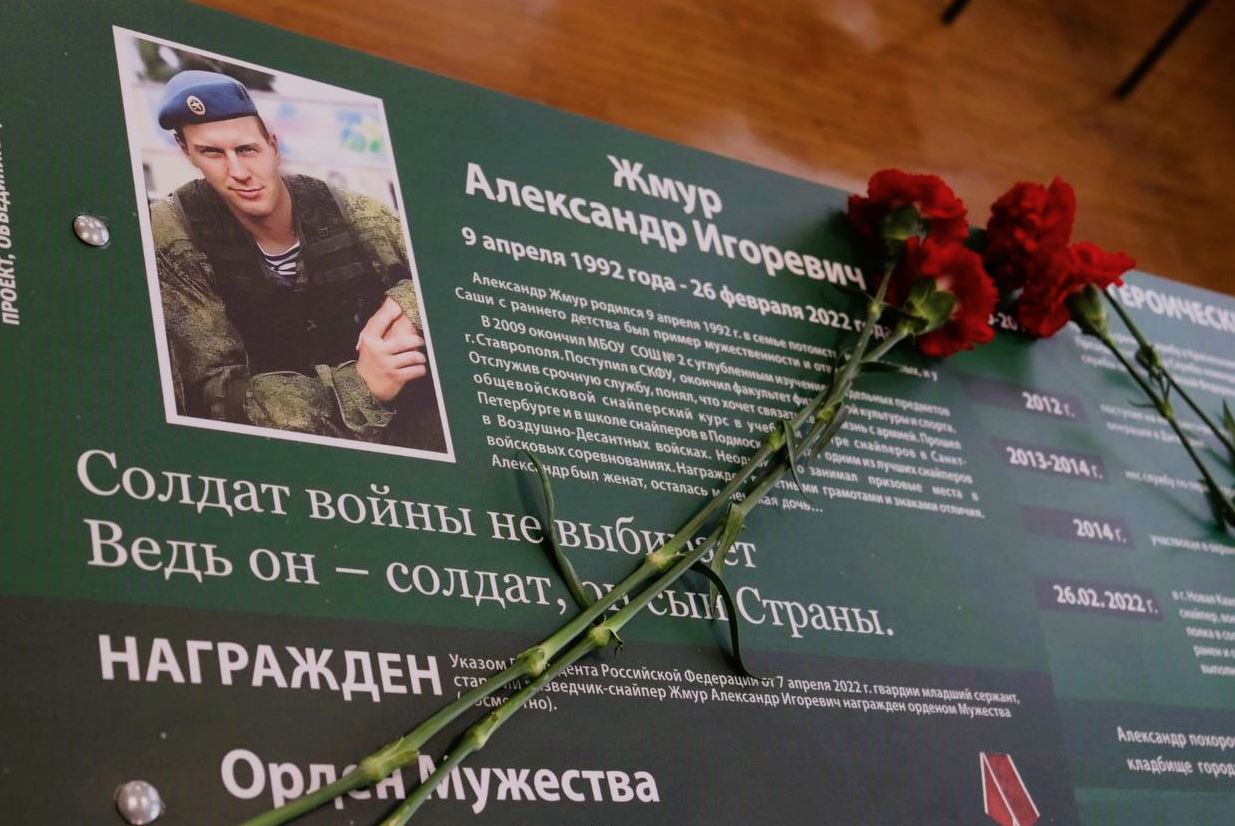 - Александр Жмур — гвардии младший сержант, разведчик-снайпер десантно-штурмового Кавказского казачьего полка, кавалер ордена Мужества. 26 февраля 2022 года погиб во время выполнения боевой задачи в зоне СВО. В школе установлена «Парта Героя» с информацией о жизненном пути и воинском подвиге Александра[13].