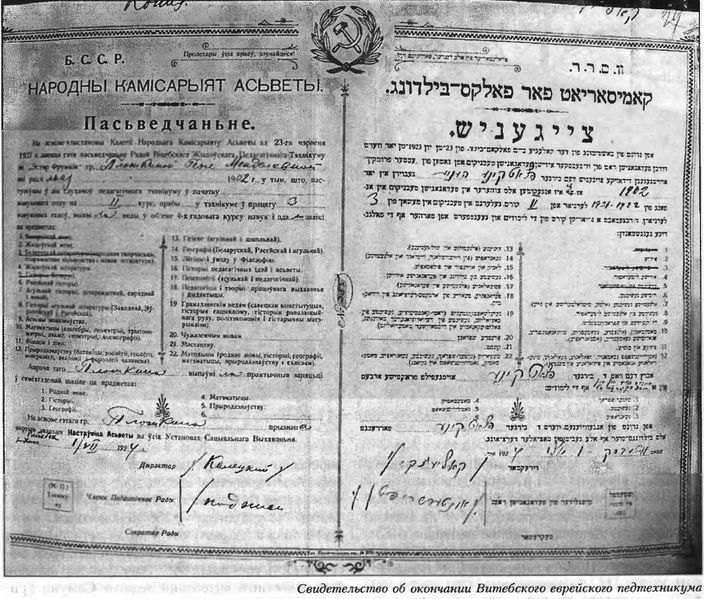- ↑ https://cyberleninka.ru/article/n/krasnyy-pedagog-yavlyaetsya-obschestvennym-rabotnikom-vitebskiy-evreyskiy-pedagogicheskiy-tehnikum-v-1920-1930-e-gg