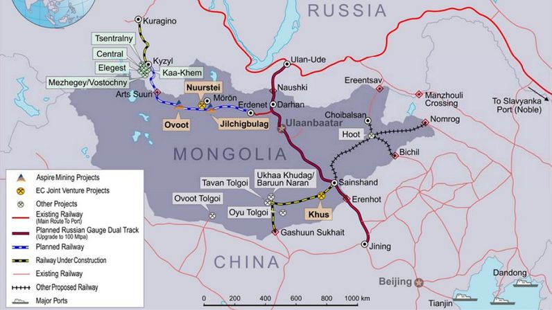 - Проект северного железнодорожного коридора (Курагино — Кызыл — Цаган толгой — Арц сурь — Овот — Эрдэнэт — Салхит — Замын-Удэ — Эрлянь — Уланчаб — Чжанцзякоу — Пекин — Тяньцзинь).