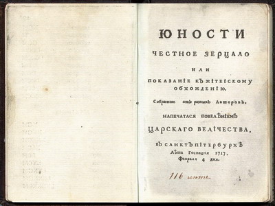 - Юности честное зерцало или показание к житейскому обхождению. Санкт-Петербург, 1717. (Распознанный текст)