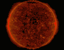 На рисунке ниже показана запись чисел Вольфа (число пятен на Солнце) начиная с 2000 года. Прогноз показан красной линией. [1]