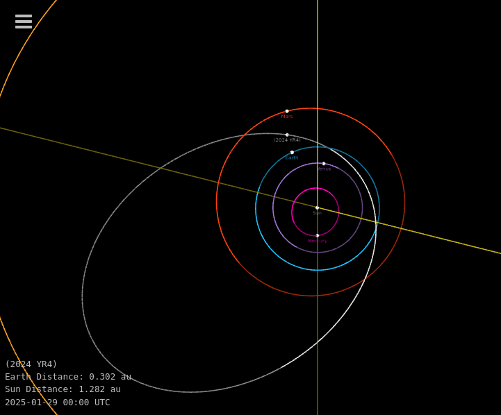 - ↑ Asteroid (NEO) 2024 YR4 — TheSkyLive.com