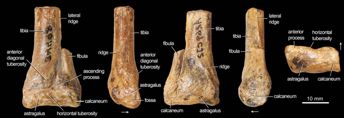 - астрагал не имеет сильного выступа медиального мыщелка тела астрагала, в результате чего тело астрагала приобретает почти прямоугольную форму в дистальной части, а вентральный край становится слегка вогнутым в краниальной части.