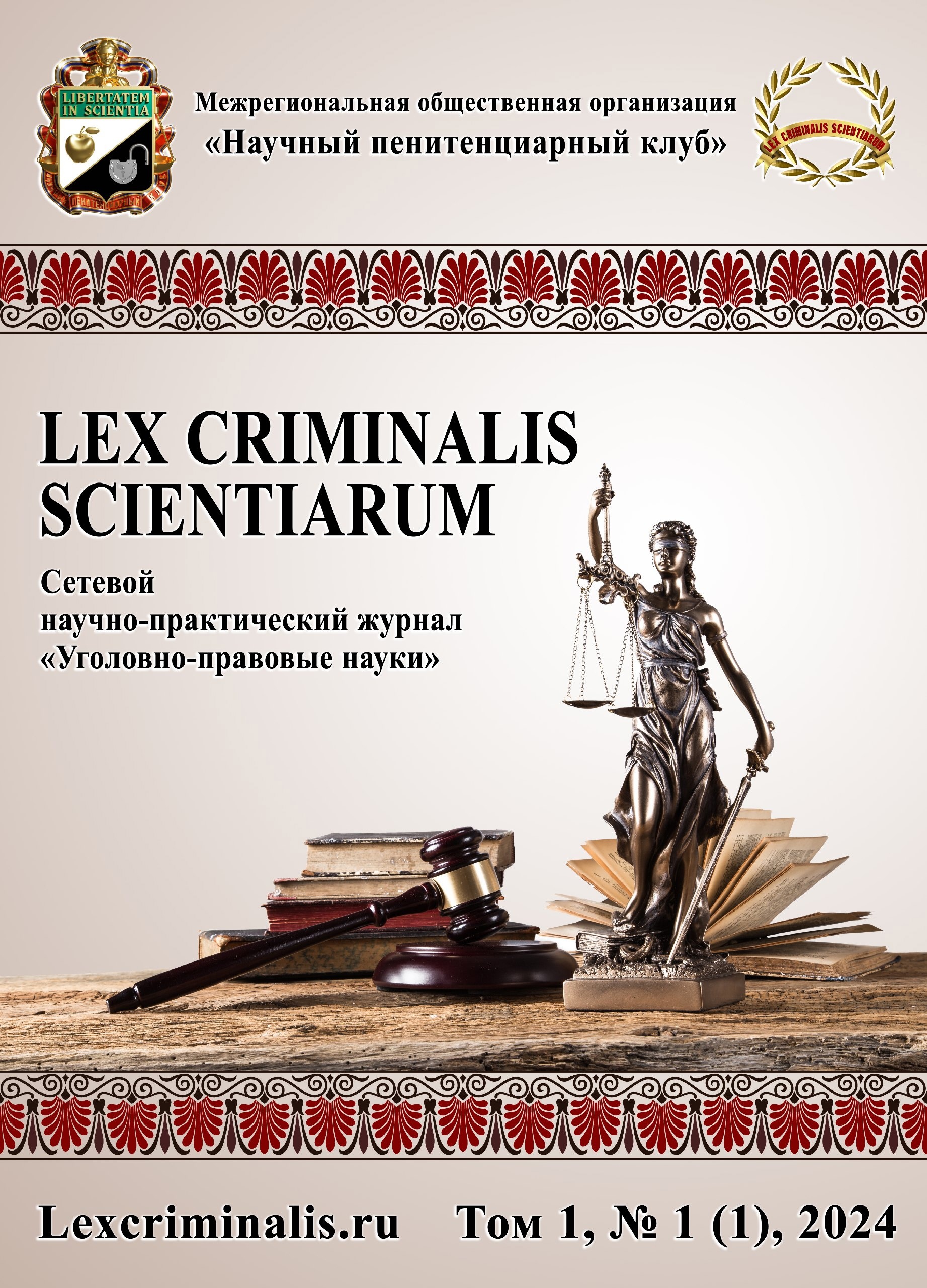 Журнал «Lex criminalis scientiarum» ‒ это новый проект Научного пенитенциарного клуба[1] (далее — НПК), реализованный по инициативе президиума клуба и поддержанный членами клуба[2], ведущими докторами и кандидатами наук, авторами и рецензентами, которые с энтузиазмом воплотили в жизнь идею по созданию научной площадки[3] для обсуждения концептуальных научных тем.