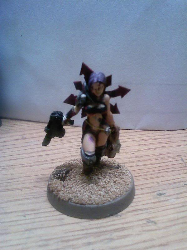 Рост культистки примерно 165 см (5’4"). Она худая вследствие недоедания и облачена в еретические лохмотья, как и большинство культистов Хаоса Неделимого. Также многие ее зубы неправильной длины и заострены, из чего происходит манера речи, однако находятся в довольно хорошем состоянии. Она несет на спине знак Колеса Хаоса, являющийся символом избранности и, потенциально, способный использоваться в качестве оружия за счет заостренных концов. Но, вероятно, она слишком слаба, чтобы использовать знак Хаоса как метательное оружие.